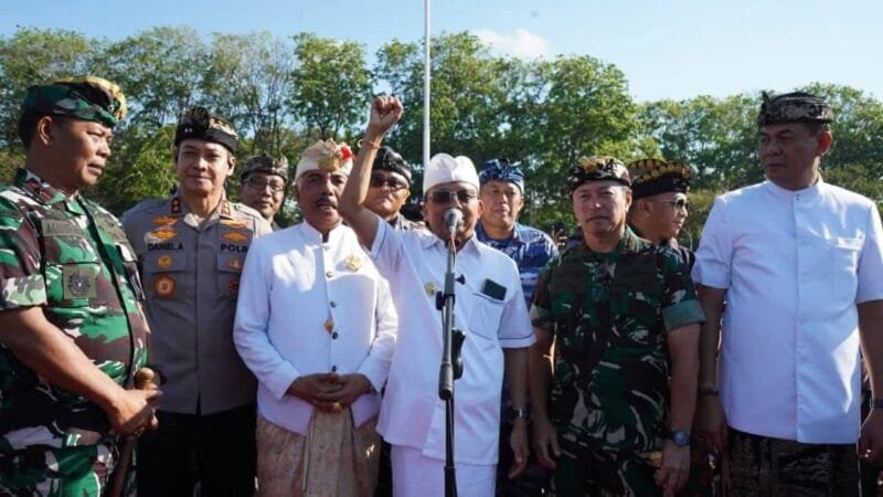 Denpasar – Gubernur Bali Wayan Koster serukan Pecalang Bali…Bali Aman, Bali Aman, Bali Aman, Merdekaaa…!!!gemuruh semeton Pecalang Bali yang memadati Lapangan Niti Mandala Renon Bali.