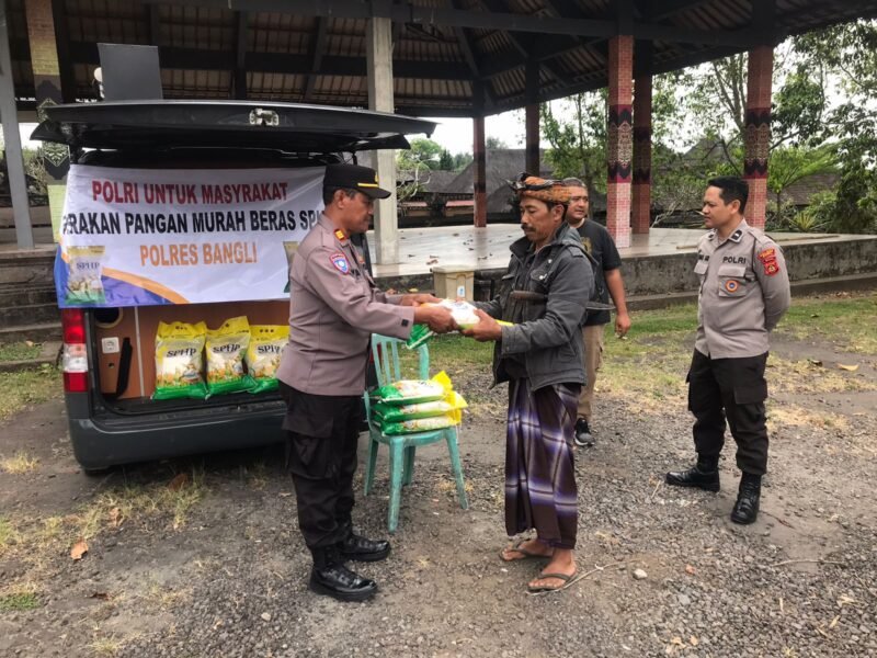 Bangli – Dalam rangka menjaga stabilisasi pasokan dan harga pangan beras SPHP, Polsek Bangli Polres Bangli melaksanakan kegiatan perdistribusian beras SPHP kepada masyarakat di Desa Pengotan Bangli, Rabu (15/10/2025), bertempat di Balai Budaya, Desa Pengotan, Kec./Kab. Bangli.