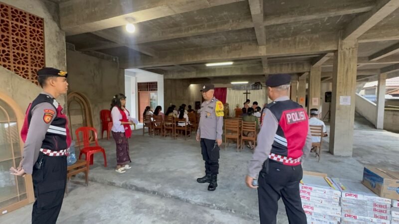 Bangli, 12 Oktober 2025 – Personil Polres Bangli dan Polsek Bangli melaksanakan pengamanan kegiatan Ibadah Minggu di Gereja Marga Rahayu Bangli. Kegiatan ibadah ini mengangkat tema “Menjadi Hamba Yang Taat Dan Rendah Hati” dan dipimpin oleh Pdt. Komang Agus Juliawan, S.Si.Teol.