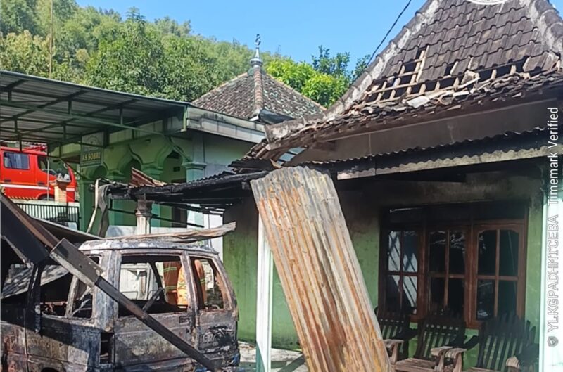 Api tampak melahap mobil yang terparkir di teras depan rumah tersebut hingga hanya menyisakan kerangkanya. Tidak ada kendaraan lain maupun perabotan rumah tangga yang ikut terbakar dalam peristiwa itu.